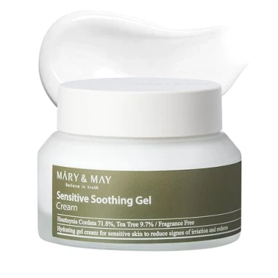 COOLING, SOOTHING, AND REDNESS RELIEF FOR SENSITIVE SKIN: The Sensitive Soothing Gel Cream delivers instant cooling relief to sensitive, irritated skin. With its derma-soothing complex, this lightweight gel cream calms redness, reduces pore size, and hydrates the skin without causing irritation. It is perfect for soothing skin that's prone to heat and redness while tightening pores for a smoother complexion. KEY INGREDIENTS FOR EFFECTIVE SKINCARE: Infused with Houttuynia Cordata extract, known for its calming properties, this cream soothes and nourishes sensitive skin. Tea tree extract works to cleanse pores and provide relief from blemishes, while panthenol (vitamin B5) locks in moisture, promoting long-lasting hydration and skin repair. EWG GREEN GRADE AND ALLERGEN-FREE FORMULA: This gel cream is formulated with EWG green grade ingredients and is allergen-free, ensuring it’s safe for even the most sensitive skin types. Its refreshing, non-sticky texture allows it to absorb quickly, leaving your skin hydrated and comfortable with a cooling, smooth finish. HOW TO USE FOR MAXIMUM EFFECTIVENESS: Apply a generous amount of the gel cream to your face and gently massage it into your skin until fully absorbed. Use it in your morning and evening skincare routine to provide continuous hydration, soothing relief, and a refreshed complexion throughout the day. COMMITMENT TO CLEAN BEAUTY FROM KOREA: Proudly hailing from Korea, MARY & MAY embodies the essence of clean beauty with a conscience. Our products are not only vegan and cruelty-free but also made with all EWG green grade ingredients. We are dedicated to eco-friendly practices, utilizing 100% recycled paper and soybean oil ink for our packaging. This commitment reflects our deep respect for both skin health and environmental sustainability.