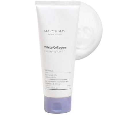 COLLAGEN-INFUSED FOR FIRM, RADIANT SKIN: Mary&May White Collagen Cleansing Foam contains 46.6% collagen, helping to improve skin firmness while leaving it radiant and vibrant. It effectively cleanses the skin, promoting elasticity and a healthy glow without stripping moisture. NIACINAMIDE FOR CLEAR SKIN: With 1% niacinamide, this cleansing foam helps regulate sebum production and inhibits melanin movement, resulting in a clearer, more even complexion. It balances oil levels and brightens the skin, making it perfect for daily use. MOISTURIZING FORMULA WITH HYALURONIC ACID: This foam contains hyaluronic acid, which holds up to 1000 times its weight in moisture. It ensures that skin stays hydrated after cleansing, preventing the dryness that often follows a deep cleanse. Suitable for all skin types, even sensitive skin. DERMATOLOGICALLY TESTED AND CLEAN BEAUTY: Dermatologically tested to be safe for sensitive skin, this product is cruelty-free, EWG green grade, and formulated with clean beauty principles in mind. Its rich, silky foam offers a luxurious cleansing experience without irritation. COMMITMENT TO CLEAN BEAUTY FROM KOREA: Proudly hailing from Korea, MARY & MAY embodies the essence of clean beauty with a conscience. Our products are not only vegan and cruelty-free but also made with all EWG green grade ingredients. We are dedicated to eco-friendly practices, utilizing 100% recycled paper and soybean oil ink for our packaging. This commitment reflects our deep respect for both skin health and environmental sustainability.