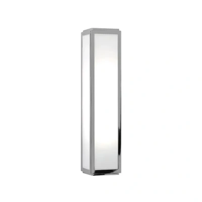 Crafted from high-quality steel, the Mashiko wall light showcases a polished chrome finish that enhances its modern aesthetic. The refined look is complemented by frosted glass panels that diffuse light beautifully, providing a warm and inviting ambiance. The wall light is designed to be a versatile addition to your bathroom, making it suitable for installation on either side of a mirror. This placement ensures optimal task lighting for activities such as shaving or applying make-up.