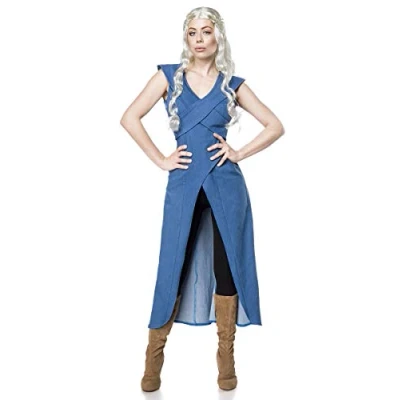 Mother of Dragons Costume Set Refined cut dress with asymmetric hem Pagoda shoulder with shoulder pads Wig with long, wavy hair and four braided braids Leggings included, Manufacturer: Mask Paradise