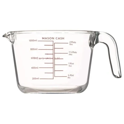 The Mason Cash Classic Collection 1L Measuring Jug is perfect for accurately measuring out wet ingredients owing to its millilitre, ounce and pint measurements on the side. A generously sized handle ensures you can get a good grip, and a pouring spout makes for very little mess when decanting liquids out of the jug.Made from glass.Dishwasher safe.1L capacity.