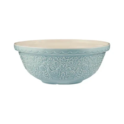 Harts of SturThe Mason Cash Home To Roost S18 Mixing Bowl is part of the joyful home to roost collection and features intricately embossed folk inspired hen and cockerel motifs on an blue colour finish.The 26cm earthenware bowl is light enough to secure with one hand whilst mixing with the other and is ideal for baking for home or professional baking.The bowl has a capacity of 2.7 litres and is ideal for pastry, cake or dough.Dishwasher safe for easy and convenient cleaning, this bowl can be safely used in the fridge or freezer for chilling ingredients. The high-gloss glaze provides a chip resistant finish.Dimensions: 11.6(H) x 26(W) x 26(L)cm.