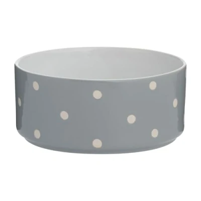 MODERN CLASSIC | The Mason Cash Polka Dot Pet Bowl features a timeless polka dot pattern with a soft grey glaze, giving a fresh, modern twist to a classic design. PRACTICAL SIZE | 18cm diameter with a 1.4L capacity, ideal for hungry or thirsty pets of all sizes. TEXTURED DETAIL | Created using a wax resist technique that adds texture to the dots, giving the bowl a handcrafted, premium finish. DURABLE STONEWARE | Made from high-quality, chip-resistant stoneware for lasting durability and stability. Keeps food and water cooler for longer. PRACTICAL & VERSATILE | Dishwasher and freezer safe for everyday convenience. Suitable for both food and water. MASON CASH HERITAGE | Mason Cash has been a trusted name in kitchen and petware for over 70 years, combining classic style, functionality and quality for the modern home.