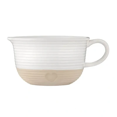 The Mason Cash Rustic Charm Batter Bowl is elegant and sophisticated and part of the Rustic Charm collection.Inspired by timeless Fresh provincial country kitchens. The subtle debossed heart motif set amongst neutral tones and a harmonious blend of matt and gloss finish with a hard wearing glaze to prevent chips.Made from stoneware, the batter bowl is the perfect solution for mixing batter or whisking eggs, making it an essential item for the everyday baker.The strong handle provide a secure grip when mixing whilst the pouring lip allows the mix to be poured with precise control.The batter bowl is dishwasher, microwave and freezer safe and has a 2 litre capacity.Dimensions: 12.3(H) x 26.5(H) x 20(W)cm.