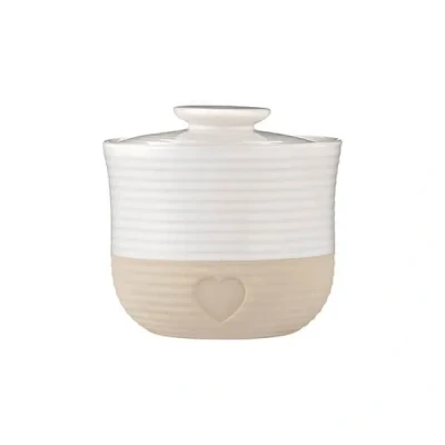 The Mason Cash Rustic Charm Storage Jar is elegant and sophisticated and part of the Rustic Charm collection.Inspired by timeless Fresh provincial country kitchens. The subtle debossed heart motif set amongst neutral tones and a harmonious blend of matt and gloss finish with a hard wearing glaze to prevent chips.Made from stoneware, this storage jar is ideal for tea, coffee and sugar or for keeping rice and pasta fresh and dry.This storage jar is dishwasher, microwave and freezer safe and has a 700ml capacity.Dimensions: 12(H) x 12.7(H) x 12.7(W)cm.