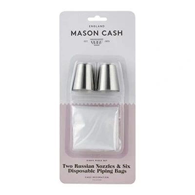 SET | The set contains 2 stainless steel icing nozzles and 6 disposable bags, the nozzles create floral decorations such as roses and tulip DIRECTIONS | Simple to use, cut the end of the icing bag and place in the nozzle, cuff the bag and fill halfway with buttercream or icing, then close the bag and squeeze to decorate CAKE DECORATING | Specifically designed to help you create professional looking cakes, no matter how experienced you may be, Our cake decorating range is easy to use and comes with simple step-by-step instructions and tutorials to help you achieve the ideal results, Bring fun and creativity to your baking with the ideal tools and equipment for the job MASON CASH | First designed in 1901, the original Mason Cash mixing bowl has endured the test of time and become something of a design classic, Alongside the much loved mixing bowl, Mason Cash is also well known for our classic pudding basins, cane pet bowls and bakeware, Today, we continue to expand our ranges by creating innovative kitchenware with contemporary twists specially designed with home cooks and bakers in mind