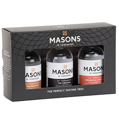 THE @@@a6XyPk7mIp1KxtJ9Onlww5EWCwUjV5eP@@@ GIN GIFT SET - A beautiful and stylish gin gift set box, perfect for a gin lover. This set contains three gin miniature bottles: The Original Gin, Tea Edition Gin and Orange & Lime Leaf Gin MULTI AWARD-WINNING GINS – Masons has won some of the world’s most prestigious awards including Gold Outstanding with 98 points at the International Wine & Spirits Competition and for the last 3 years, Gold at the World Gin Awards THE ORIGINAL TASTING NOTES – On the nose, aniseed, saffron and lemon grass. The palate: bold notes of liquorice and fennel, juniper and pine. Finish: a hint of Parma violet, juniper and lingering orange zest TEA EDITION TASTING NOTES – On the nose, strongly brewed tea. The palate: light cardamom and coriander with citrus undertones. The finish: long and dry with a distinct taste of strong black tea ORANGE AND LIME LEAF TASTING NOTES - Juniper, orange & kaffir lime leaf are all perfectly balanced for a punchy and fragrant gin and a long, dry finish MADE THE MASONS WAY – Masons started with a simple mission; to create exceptional gin with more character, flavour and uncompromising quality. Distilled to exceptional London Dry standards, without compromise or shortcuts; made with love and care