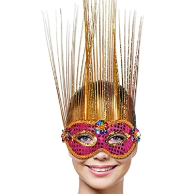 Masquerade Mask with Rainbow Coloured Stand Up Design, Unusual Venetian Colours, Elastic...