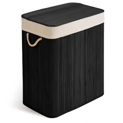 No more laundry hills: The large laundry basket with lid made of bamboo (100 litres) can hold up to 5 machine loads and keeps your bathroom, bedroom or laundry room tidy. ALWAYS FRESH LAUNDRY - The breathable, antibacterial construction of the laundry hamper prevents moisture and odours - ideal if you collect laundry for several days. Practical and flexible: the removable foldable laundry bag can be carried to the washing machine with one hand without cumbersome repacking. CONVENIENCE IN TRANSPORT Sturdy handles and a sturdy base make the laundry basket foldable, easy to move and keeps its shape - even fully loaded. Laundry sorter: 2 separate compartments allow you to easily separate light and dark laundry - saving you the tedious sorting before washing.