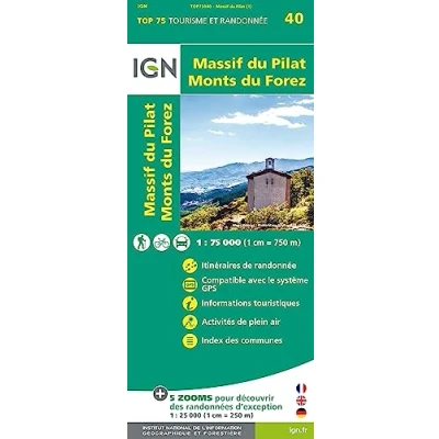Top25 2933ET Massif du Pilat walking and hiking map with free distance scale ruler