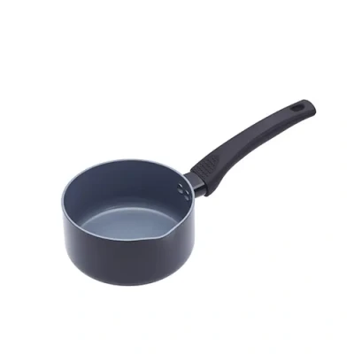 General description This non-stick ceramic coated milk pan is ideal for everyday use due to its tough aluminium body and ceramic coating. It distributes heat quickly for reduced heating times and features a stainless iron base. This pan is perfect for cooking small amounts like sauces and soups, and its non-stick coating ensures that food won't stick to the surface. Additionally, it is 100% chemical free, making it a healthy choice for cooking. Technical specifications Diameter: 14 cm Material: Aluminium with ceramic coating Base: Stainless iron Usage Ideal for cooking small amounts like sauces and soups Non-stick surface prevents food from sticking Other information Bakelite handle prevents overheating, ensuring safe grip