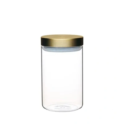 Food storage doesn't need to be boring. This clear glass jar is topped with a luxurious brass-effect metal lid for a very smart look As well as giving it a gorgeous glimmer, the screw-top lid creates an airtight seal, so your food stays fresh for longer With its 1 L (1¾ pt) capacity, it's ideal for storing medium quantities of any dry food - from boiled sweets to cookies to cornflour Made of robust, food-safe glass. Because it's so clear, you'll always see what's inside, so you're more likely to use up ingredients This is the medium size of 3 matching jars. All varieties are dishwasher safe and come with a 12 month guarantee