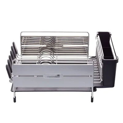 The essential washing up tool: This high-quality, practical, anti-tarnish dish drying rack provides years of use without rusting. Perfect for putting on the draining board Dish rack is made from tarnish-resistant, easy-to-clean stainless steel - and comes with a removable cutlery drainer and integrated mug rack Makes washing up easy and ordered: Its integral plate rack provides lots of space for the dinner plates, with extra room for cups, glasses and bowls Generous sized dish drainer. It's a quick and hygienic way to dry your plates, crockery, cutlery and utensils. With a removable drip tray and clever swivelling drainage spout Comes protected by the MasterClass 5 year guarantee