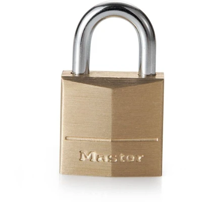 General description The Master Lock 120EURD is a solid brass padlock designed for reliable security. With a modern diamond-shaped design and brushed finish, this 20mm padlock features a sturdy steel shackle and a 3-pin cylinder, making it a tough choice for various locking needs. Each padlock comes with a minimum of 2 keys and is backed by a Lifetime Warranty against mechanical failure. Technical specifications Body Width: 20mm Shackle Width: 4mm Shackle Diameter: 3mm Lock Height: 11mm Number of Keys Included: 2 Material: Brass Color: Gold Compatibility and accessories Universal compatibility with all brands and types of luggage and bags Installation Designed to be attached to zippers, straps, or luggage loops for secure closure Usage Ideal for securing backpacks, briefcases, travel bags, sports bags, and other personal luggage Suggested uses include gates, containers, storage units, and sheds Other information