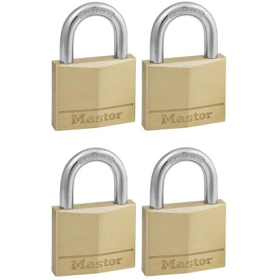 Master Lock 150EURQNOP Pack of 4 Key Padlocks with Brass Body, Gold, 6,8 x 5 1,4 cm