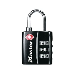General description The Master Lock TSA 3-Digit Combination Padlock is designed for securing luggage during travel, specifically for use in airports worldwide by Transportation Security Administration (TSA) screeners. This TSA-approved combination padlock allows TSA personnel to open, inspect, and reseal your luggage without damaging the lock or the bag, providing a secure and convenient way to protect your belongings while complying with airport security regulations. The padlock features a durable 30mm metal housing and a sturdy steel shackle, making it tough, practical, and visually appealing. Technical specifications Body Width: 30mm Shackle Diameter: 3mm Shackle Width: 13mm Type: Combination Combination: 3-digit resettable code Internal Shackle Dimensions: approximately 13 x 19mm Material: Durable metal housing Compatibility and accessories Suitable for most luggage zippers and travel bags Compatible with standard luggage locks and zippers Installation Attach the shackle through