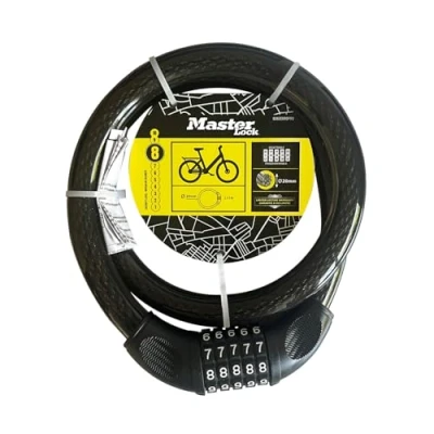 BIKE LOCK APPLICATION: For indoor and outdoor use, ideal to secure bicycles, Scooters, e-bikes, skateboards, lawnmowers, strollers, gates, fences and other outdoor equipment SECURED DESIGN: 5 dials set-your-own combination security for keyless convenience, flexible braided 20mm diameter steel cable DURABLE DESIGN: Protective PVC coating helps prevent scratching SPECIFICATIONS: Cable (length x diameter) 1m x 20mm, black Limited Lifetime Warranty, Weight: 1.653466965 pounds, Manufacturer: Master Lock