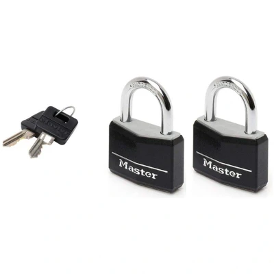 Master Lock 9140EURDBLK Pack of 2 Key Padlocks in Aluminium with Vinyl Cover, Black, 4 x 5.9 1.3 cm