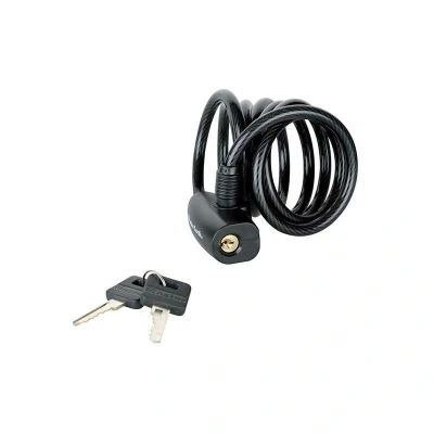 General description This black self-coiling keyed cable lock is 1.8 meters long with an 8mm diameter twisted steel cable, offering high strength and flexibility. The cable is coated with protective vinyl to prevent scratches and features an integrated pin tumbler lock for enhanced security, making it resistant to picking. It is suitable for securing bikes, equipment, or other valuables. Technical specifications Length: 1.8 meters (180 cm) Diameter of cable: 8 mm Material: Twisted steel with vinyl coating Locking mechanism: Keyed pin tumbler Security level: 4 Compatibility and accessories Compatible with standard keys for keyed locks Includes one key (additional keys may be available) Installation Insert the key into the lock and turn to secure or release the cable Wrap the cable around the item and a secure anchor point Insert the cable end into the lock and turn the key to lock Usage Use to secure bicycles, gates, or equipment Ensure the lock is fully engaged before leaving the