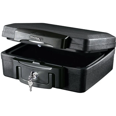General description The Master Lock H0100 Small Key Locking Chest is a waterproof and fire-resistant storage solution designed to protect your important documents, records, and valuables. Its sleek design features a flush-mounted faceplate and a rugged appearance, making it both functional and aesthetically pleasing. Technical specifications External Dimensions (HxWxD): 15.6 x 36.2 x 33 cm Internal Dimensions (HxWxD): 8.9 x 30.5 x 18.8 cm Fire endurance: UL Classified for 1/2 hour at 843°C Explosion hazard test: Subjected to a flash fire in a 1093°C furnace for 20 minutes without explosion or rupture ETL Verified for 1/2 hour fire protection of digital media up to 843°C Water submersion protection for valuable items and documents
