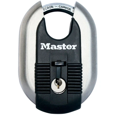 MASTER LOCK Heavy Duty Disc Padlock, Security Level 9/10, Outdoor, Keyed, Stainless Steel Titanium Reinforced, Closed Shackle