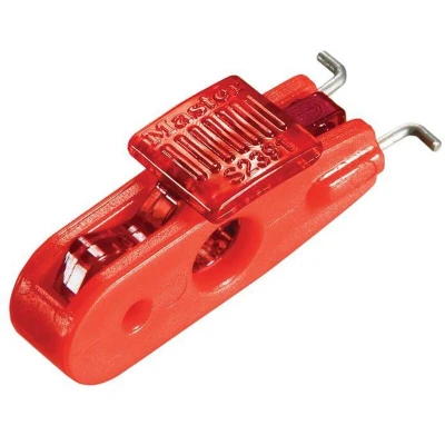 General description The Master Lock No. S2391 Miniature Circuit Breaker Lockout Device is designed to lock out most miniature ISO/DIN pin-out circuit breakers globally. This patented device is specifically engineered to fit breakers with toggle openings ranging from 11 to 13mm, ensuring safety during maintenance work. Technical specifications Fits toggle openings: 11 to 13mm Color: Red Compatibility and accessories Works with all Master Lock and American Lock safety padlocks Compatible with most hasps Installation Fast and easy to use No tools required