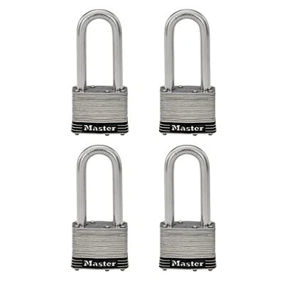 Padlock with key is best used for marine recreation, saltwater applications, offshore security environments and severe uses Key lock features a stainless-steel lock body and shackle for maximum strength and corrosion resistance Brass 4-pin tumbler and dual ball bearing locking mechanism provide maximum weather, pick and pry resistance 2-in. (50 mm) wide lock body; 3/8-in. (10 mm) diameter shackle with 2-1/2 in. (64 mm) length, 15/16-in. (24 mm) width; Extended shackle for application flexibility Includes four padlocks with two keys; Both keys open each lock, Weight: 1.2 Pounds, Manufacturer: Master Lock