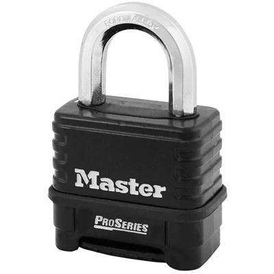 General description The Master Lock 1178D ProSeries® 4-Digit Padlock features a robust die-cast zinc body and an octagonal boron carbide alloy shackle, providing superior protection against forced removal. Its resettable 4-digit combination offers over 10,000 possible combinations, while the deadlocking mechanism safeguards against prying, shimming, and rap attacks. The combination dials are designed for ease of use, even in low light or when wearing gloves, and the lock is equipped with a shackle seal and combination dial dust cover to maintain internal integrity and protect against dirt and debris. Technical specifications Body dimensions: 57 x 50 mm Body thickness: 31 mm Shackle dimensions: 24 x 27 mm Shackle thickness: 10 mm