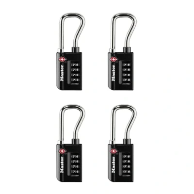 Master Lock Padlock, Set Your Own Combination TSA Accepted Luggage Lock, 1 5/16 in. Wide, Black, 4 pk, 4696EC4
