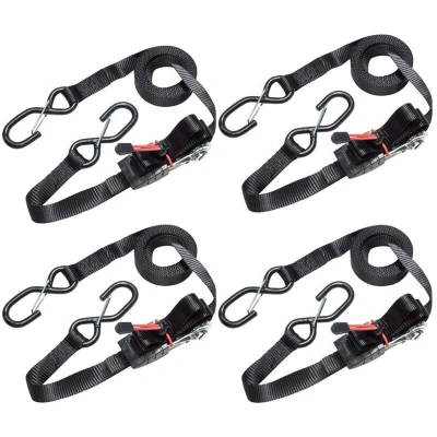 General description Master Lock Ratchet Tie-Down S-Hooks are designed to securely fasten luggage or other loads to cars, van roof racks, or trailers. This set includes four durable tie-downs featuring integrated S-Hooks with clips for easy installation. Technical specifications Length: 4.25m Width: 25mm Load Capacity: 400kg Max Capacity: 800kg Quantity: 4 Pieces Breaking Strength: 800kg Type: Ratchet Other information TUV certified