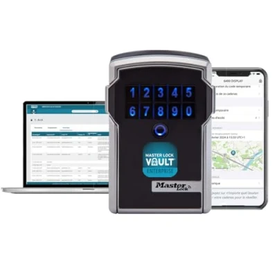 PROFESSIONAL APPLICATION Vault Enterprise Incl. Wall mounted key safe to share access (keys or access card) for real estate sales, commercial property, facilities, manufacturing, job sites and more MASTER LOCK VAULT ENTERPRISE: use your smartphone to open your key safe with the Master Lock Vault Enterprise app or the manual combination entry (available for Android and iOs + web interface) FLEXIBLE ASSET MANAGEMENT: administrators can give permanent or temporary access to employees, create groups for specific locks or key safes or create a real customized access-system HIGH SECURITY KEY SAFE: zinc body with dual locking mechanism and 256-bit military-grade encryption ; large back-lit numeric keypad with 10 digits DURABLE DESIGN: outdoor use and weather resistance from -40° to +50° ; CR123A battery included and battery jump in case battery dies while locked PRODUCT FEATURES: exterior dimensions (HxWxD) 12.7 x 8.3 x 5.9 cm ; interior dimensions (HxWxD) 9.4 x 6.2 x 2.5 cm ; mounting kit included, Weight: 2.651105943408124 pounds, Manufacturer: Master Lock