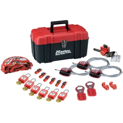 Test-meter.co.ukComprehensive Masterlock electrical & mechanical lockout kit. Includes 6 padlocks, valve/ball valve safety devices, RCD/MCB protection. Versatile toolbox for engineering maintenance safety (25-165mm coverage).
