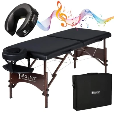 Master Massage 71cm Argo Bluetooth Standard Music Face Cushion Professional Lightweight Portable Table Therapy Foldable Couch Lash Bed Package SPA Salon Facial Beauty Bed, Black