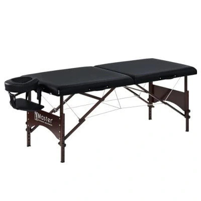 Master Massage 71cm Argo Portable Table in Black with Walnut Legs Spa Bed for Tabletop Exercise & Beauty Tattoo Lash