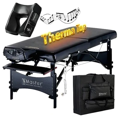 Fully Adjustable & Easy to Transport- Take your practice on the go with the Galaxy travel massage bed from Master Massage, weighing only 17KG. for easy transport. Although lightweight, this full-sized portable massage table measures 71x214cm(WxL), and the portable massage bed’s height can be adjusted between 61-86cm for the perfect fit. Built-In Warmth- The Galaxy Therma Top Built-in Heating Pad portable beauty table/massage table includes a built-in warming system to add a special element of relaxation to each massage session. Made from durable and safe materials, this portable lash bed is ETL/CETL-certified and will keep you and your clients safe. Sturdy Support- With 682KG. aircraft grade steel cables that offer a working capacity of up to 340KG., the Master Massage heated table / foldable facial bed is sure to provide long lasting and dependable support. Sturdy legs are made from European beech wood that surpasses CARB requirements and provide a stable session. High Fidelity Sound Bluetooth Ergonomic Dream Face Pillow-The ultra-soft molded music cushion is 7.6cm thick features a 1000 mAh lithium battery that supports 12 hours of music playback. Accessories Included- An ergonomic DreamTM face cradle, an Ergonomic Dream Bluetooth Music face cushion, a Florida style arm rest shelf, and a four-pocket carrying case for secure storage and transport. Folding spa bed/ portable massage table.