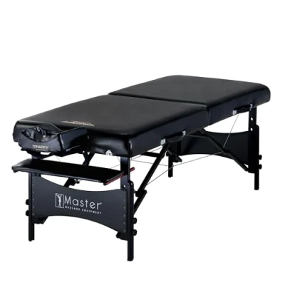 đăEasy to Transportă- The full-sized Galaxy portable massage table from Master Massage weighs only 38lbs and offers the full features and design of a professional folding massage table, in a portable option. Measuring 30" wide x 84" long, this foldable spa bedâs height can also be easily adjusted between 24" and 34". đăEasy to Transportă- The full-sized Galaxy portable massage table from Master Massage weighs only 38lbs and offers the full features and design of a professional folding massage table, in a portable option. Measuring 30" wide x 84" long, this foldable spa bedâs height can also be easily adjusted between 24" and 34". đăAdd Elegance to Any Roomă- European beech wood legs are protected by a rich, hi-gloss Dura Seal finish to ensure years of use and give all your clients the luxurious experience they deserve. Enjoy years of use, all Master Portable Beauty Beds are built to last! đăSolid Constructionă- The With a maximum working capacity of 750 lbs., the Galaxy is supported by 1,500 lbs. aircraft-grade steel support cables for added strength during your toughest sessions. Our foldable massage bedâs legs are crafted from European beech wood with a black finish, passing CARB requirements set by the California Air Resources Board. đăAll-inclusive Packageă- The Master Foldable Massage Table package comes with an Ergonomic Dream face cushion, Florida-style armrest shelf, and four-pocket carrying case as well as the revolutionary Ergonomic Dream face cradle.