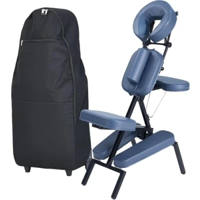 Master Massage Professional Lightweight Portable Chair,Foldable, Adjustable Aluminum Chair Designed for Convenience, Featuring a Wheeled Carrying case, Sleek Blue Finish