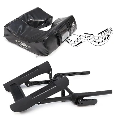 【 HIGH-QUALITY STEREO SOUND 】- The Master High Fidelity Sound Face Cradle Cushion has two built-in stereo speakers, creating a rich and immersive sound that is perfect for massage therapy. This unique Music Face Pillow headrest for massage table and bed provides realistic sound quality for complete relaxation during the massage. 【 CONVENIENT CONNECTIVITY 】 - With three different ports for iPhone, Samsung and 3.5mm AUX, you can easily connect your MusicMaster Musical Cushion Pad to most mobile devices or use the Bluetooth feature. including crackling fires and croaky frogs. Enjoy the convenience of listening to your favorite music during massage therapy sessions without having to worry about cords getting in the way. 【 MEMORY FOAM COMFORT 】- The ultra-soft molded music cushion pad for massage bed is 3.5 inches thick and provides a memory foam effect that contours to the shape of your head and neck. The harder bottom layer offers stability, support, and comfort for maximum relaxation during massage sessions. 【 PORTABLE DESIGN 】- This musical massage headrest for bed fits comfortably on most massage tables and is lightweight enough for professional or home use. Take it anywhere needed 【 12 HOUR CHARGE 】- The MusicMaster Sound Headrest Cushion for salon bed features a 1000 mAh lithium battery that supports 12 hours of music playback when fully charged, so you can use it on the go. Enjoy your favorite music or nature sounds wherever and whenever with this convenient BLUETOOTH Sound Neck Pillow for Spa tables.
