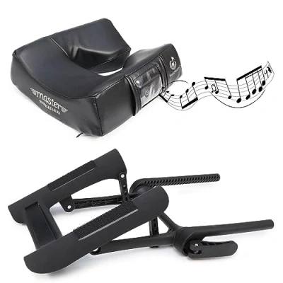 【 HIGH-QUALITY STEREO SOUND 】- The Master High Fidelity Sound Face Cradle Cushion has two built-in stereo speakers, creating a rich and immersive sound that is perfect for massage therapy. This unique Music Face Pillow headrest for massage table and bed provides realistic sound quality for complete relaxation during the massage. 【 CONVENIENT CONNECTIVITY 】 - With three different ports for iPhone, Samsung and 3.5mm AUX, you can easily connect your MusicMaster Musical Cushion Pad to most mobile devices or use the Bluetooth feature. including crackling fires and croaky frogs. Enjoy the convenience of listening to your favorite music during massage therapy sessions without having to worry about cords getting in the way. 【 MEMORY FOAM COMFORT 】- The ultra-soft molded music cushion pad for massage bed is 3.5 inches thick and provides a memory foam effect that contours to the shape of your head and neck. The harder bottom layer offers stability, support, and comfort for maximum relaxation during massage sessions. 【 PORTABLE DESIGN 】- This musical massage headrest for bed fits comfortably on most massage tables and is lightweight enough for professional or home use. Take it anywhere needed 【 12 HOUR CHARGE 】- The MusicMaster Sound Headrest Cushion for salon bed features a 1000 mAh lithium battery that supports 12 hours of music playback when fully charged, so you can use it on the go. Enjoy your favorite music or nature sounds wherever and whenever with this convenient BLUETOOTH Sound Neck Pillow for Spa tables.