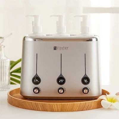 WARM OILS & LOTIONS- Are you looking for a way to heat up your massage oils , lotions and cream? This Massage Oil Warmer makes it easy, with precise heating and temperature control. The digital display screen shows the exact temperature so you can get your massage oils and body lotions to the perfect warmth every time! PRECISE HEATING- Our Massage oil warmer is designed to heat quickly and easily, so you don't have to wait for long. It takes only 20 minutes to fully heat up your massage oils , body lotions and cream, and it can be adjusted with the dial from 104-140 °F. Just fill up the bottles, insert them into the massage oil heater, and turn it on to get quick and easy results! SET 3 TEMPERATURES- The 3 bottle Massage Lotion Warmer for massage therapy can hold three different types of body lotion or massage oils and heat them all to individual temperatures! This convenient feature helps you personalize the massage experience and save space. CONVENIENT USE- Warming massage oil is easy with a sleek modern design and durable ABS plastic construction. The durable pumps dispense the perfect amount of product, and it plugs in so you can use it in any room. Plus, there's an auto safety shutoff after 8 hours for added peace of mind. PERFECT FOR EVERYONE- Use this massage cream heater for massage therapists or in your own home. Whether you're a professional or just getting started, this massage cream warmer is the tool you need to get the perfect temperature every time!