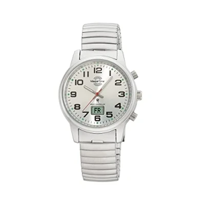 Analogue radio-controlled watch for women in a classic design with flexible drawstring Easy-to-read watch with luminous hands, luminous numbers and digital date Radio controlled automatic time change between summer and winter time, perpetual calendar Always the perfect time thanks to radio reception, radio clock with long-term battery Receives the DCF 77 signal (Mainflingen, DE)