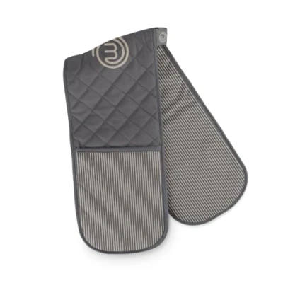 OFFICIAL MASTERCHEF PRODUCT - This quality cotton oven glove set is an official product of MasterChef the TV Series, designed in Great Britain. HEAT & FIRE-RESISTANT FABRIC - Made with high quality cotton these oven gloves are hardwearing and heat resistant up to 250°C. They can be safely used to remove hot cookware from your oven or stove. CONVENIENT STORAGE - Fitted with a 100% cotton hanging loop for easy storage and an lasered MasterChef logo on each glove. EASY TO CLEAN - These oven gloves are made of a 100% cotton and are machine washable at 40°C, making it super easy to keep them clean and hygienic for daily use. CONTEMPORARY EARTHEN TONES - The earthy pin stripe design is perfect for more contemporary homes or those looking to bring a modern feel to their kitchen