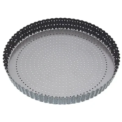 Make delicious quiches, flans and tarts with this non-stick, fluted round quiche tin. The perforated holes along the base and sides ensure the air circulates freely during the cooking process and you can create fruit flans and savoury quiches with the perfect golden-brown, crisp crust. Let's banish the soggy bottom forever! Various sizes available.A revolutionary new take on the award winning Master Class bakeware that creates the perfect crispy crust with no soggy bottoms. Carefully selected, the Crusty Bake range in Master Class bakeware includes key items for baking and cooking anything dough and pastry related, all are dishwasher, oven, fridge and freezer safe.Kitchencraft Master Class Crusty bake features a Quantum 2 non-stick coating, with perforated holes for a crusty bake, PFOA, PTFE, BPA free and covered by a Kitchencraft Master Class 20 year guarantee.