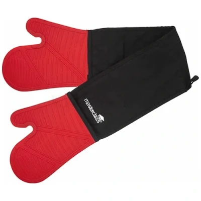 What You'll Get - Masterclass cotton and silicon heat resistant oven gloves, double sided to handle hot items like a pro Safe, Heat Proof Silicone - Heat proof to 250°C, it protects against hot surfaces, steam and liquids, LFGB-grade and food-safe Seamless Design - They are stain-resistant and non-slip with raised grips, so you can maintain a secure hold Comfortable to Use - The cotton interior and cotton cuff provide additional softness Guaranteed Quality - The gloves are certified to Regulation (EU) 2016/425 and include a 5-year guarantee