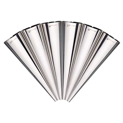 PRO PASTRIES MADE SIMPLE: these cream horn shapers are all you need to make filled pastry horns, brandy snaps, or mini waffle cones EASY TO USE: simply wrap strips of pastry around the moulds, bake, then fill with cream and fruit, or lemon curd, or compote... ROBUST DESIGN: the cream horn cones are made of sturdy, rust resistant stainless steel that won’t lose its shape while baking STACKABLE: the cones stack neatly, to save space in your cupboard or drawer USEFUL INFO: includes 6 cream horn moulds measuring 14cm long by 3.5cm wide; dishwasher safe; 5 year MasterClass guarantee
