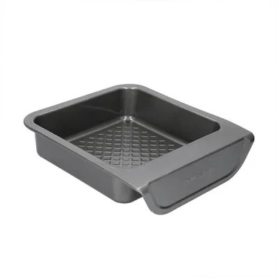 General description Made from high-quality carbon steel, the MasterClass Smart Stack Non-Stick Square Baking Tin features dimples to improve air flow. Ideal for everyday use, this baking tin is designed for convenience and efficiency. Technical specifications Material: Carbon steel Heat resistance: Up to 220°C (428°F) Dimensions: 28cm x 24.5cm x 6cm Non-stick coating: BPA, PFOA, and PTFE free Lifetime manufacturer's guarantee (5-year guarantee on non-stick coating) Usage This square baking tin is perfect for baking a variety of dishes and is designed for easy lifting and carrying while wearing oven gloves. The sturdy lip allows for stacking vertically, saving space in your kitchen. Other information Dishwasher safe, although hand washing is recommended. Part of the MasterClass Smart Stack bakeware range.