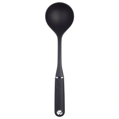 The MasterClass Soft Grip Nylon Ladle is perfect for serving stews, casseroles and soups.This nylon ladle features an ergonomic thumb hold on the soft grip handle for added grip and balance.The heat-resistant nylon head of this MasterClass ladle is resistant to discoloration and odours, is heat resistant to 204°C and is suitable for use on non-stick cookware.The MasterClass Soft Grip Nylon Ladle also features premium chrome accents and a hanging loop and is supplied with a 5 year manufacturer's guarantee.