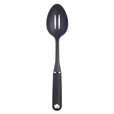 The MasterClass Soft Grip Nylon Slotted Spoon is a useful kitchen utensil which can used for removing vegetables from water, draining fried meat and even removing hard boiled eggs.The heat-resistant nylon head is resistant to staining and odours, is heat resistant to 204°C and is suitable for use with non-stick cookware. The soft touch handle features an ergonomic thumb hold for added balance and grip.The MasterClass Soft Grip Nylon Slotted Spoon also features premium chrome accents and a hanging loop and is supplied with a 5 year manufacturer's guarantee.