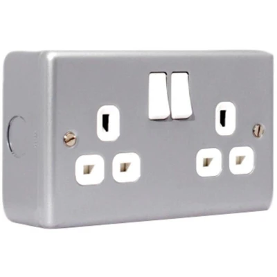 General description The Masterplug Metal Clad Switched Socket is a durable and reliable 2-gang 13A socket designed for both home and commercial use. Its metal casing provides enhanced protection and durability, making it suitable for demanding environments. The socket features a switch for each outlet, allowing easy control of connected devices. Technical specifications Type: Switched Socket Number of gangs: 2 Current rating: 13A Material: Metal Clad Part Number: MC522-01 EAN: 5021166052202 Compatibility and accessories Compatible with standard UK plugs and electrical systems Suitable for use with various electrical appliances requiring a 13A connection Installation Designed for wall mounting in standard electrical boxes Requires professional installation by a qualified electrician Usage Provides a switched power outlet for appliances Allows individual control of each socket via the switch Suitable for everyday use in a garage, shed, commercial, and industrial environments Other