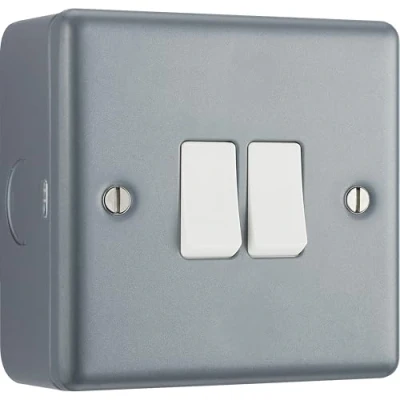 VERSATILE AND STURDY METAL DOUBLE SWITCH: From BG Electrical, this Metal Clad 20A wall switch has a flat profile with rounded edges, white inserts and no visible plastic around the switches PART OF THE METAL CLAD RANGE FROM BG ELECTRICAL: The switch has a rugged scratch resistant heavy gauge steel which ensures durability and longevity IDEAL FOR COMMERCIAL AND INDUSTRIAL ENVIRONMENTS: With multiple knockouts on the back box for flexibility of installation CAPTIVE BACKED-OUT TERMINAL SCREWS: Easy wire connection and terminal screws for fast installation and to prevent screw loss. Multiple knockouts allow for versatility with installation BG ELECTRICAL 25 YEARS MANUFACTURER'S WARRANTY: They guarantee against faulty materials and workmanship for 25 years – giving you total peace of mind